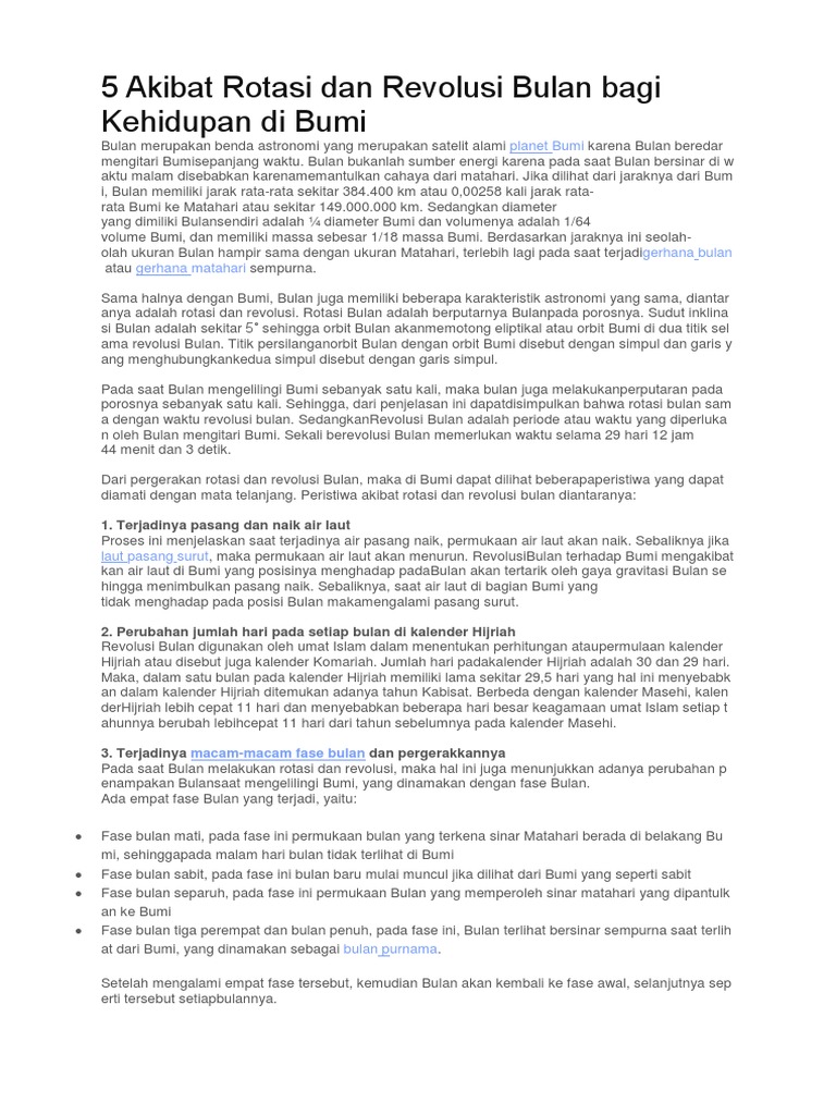 5 Akibat Rotasi Dan Revolusi Bulan Bagi Kehidupan Di Bumi