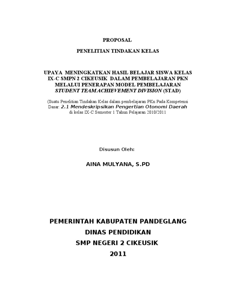 Contoh Proposal Penelitian Kuantitatif (Penelitian Tindakan Kelas) ~ Raja Nirwana