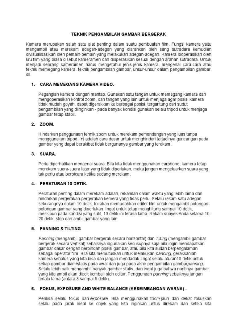 DOC) Teknik Pengambilan Gambar (Shooting Editing) | Phuzpa Cahyani - Academia.edu