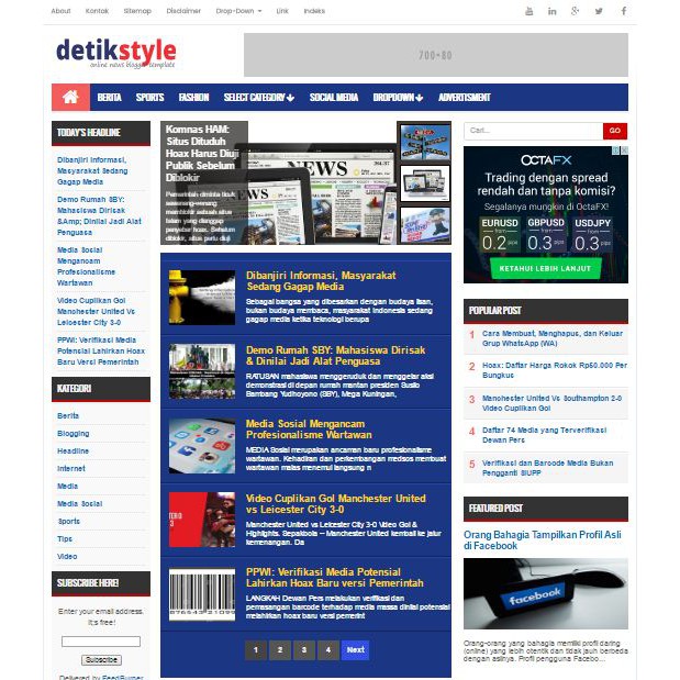 Template Blogger Detik Style (SEO Friendly, Full Responsive) Untuk Blog Berita