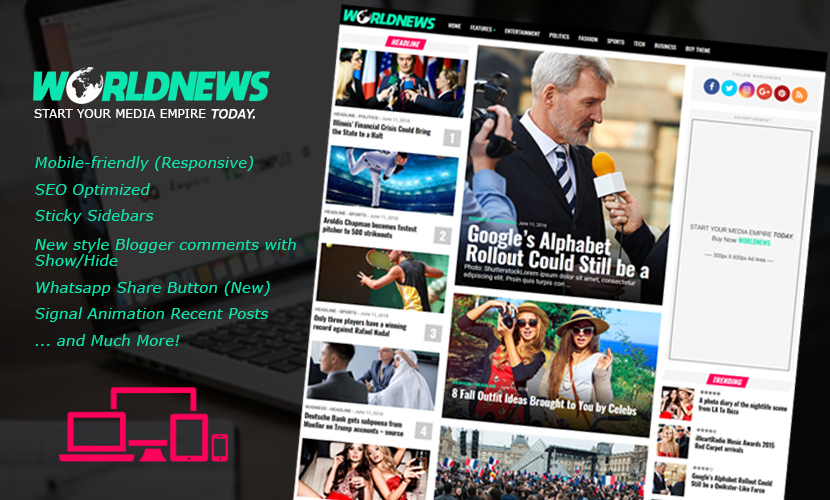 Trends - News/Magazine Responsive Blogger Template by TemplatesZoo