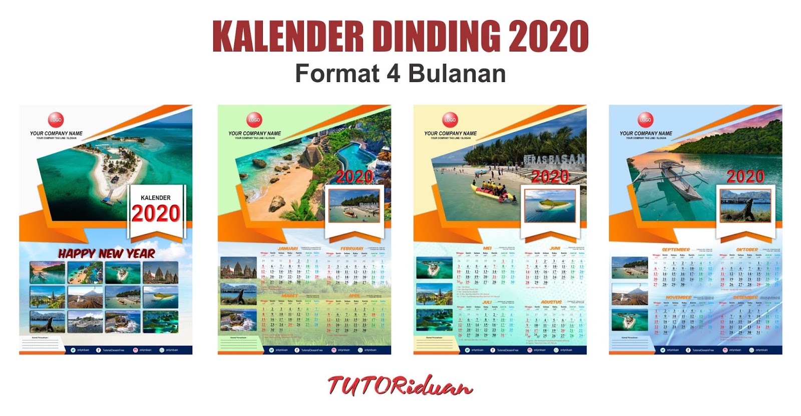 Desain Kalender Dinding 2020 Format 4 Bulanan dengan Photoshop - TUTORiduan.com