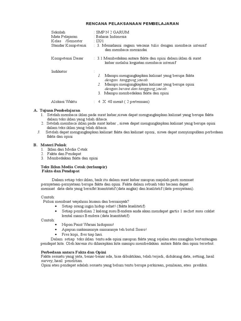 Makalah Kelas 9 Bahasa Indonesia (Fakta, Opini dan Iklan Baris) – Guruku Ganteng