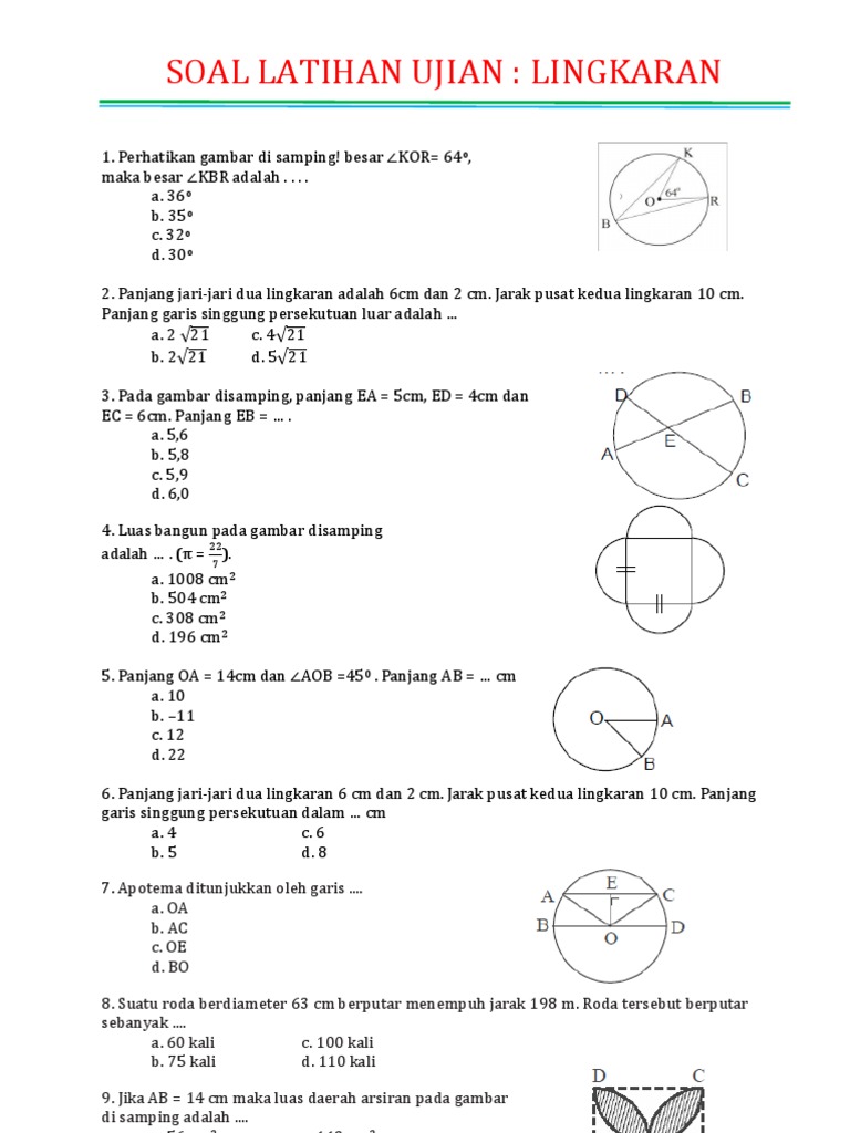 Soal Lingkaran 1. Pada gambar di bawah menunjukkan empat buah …