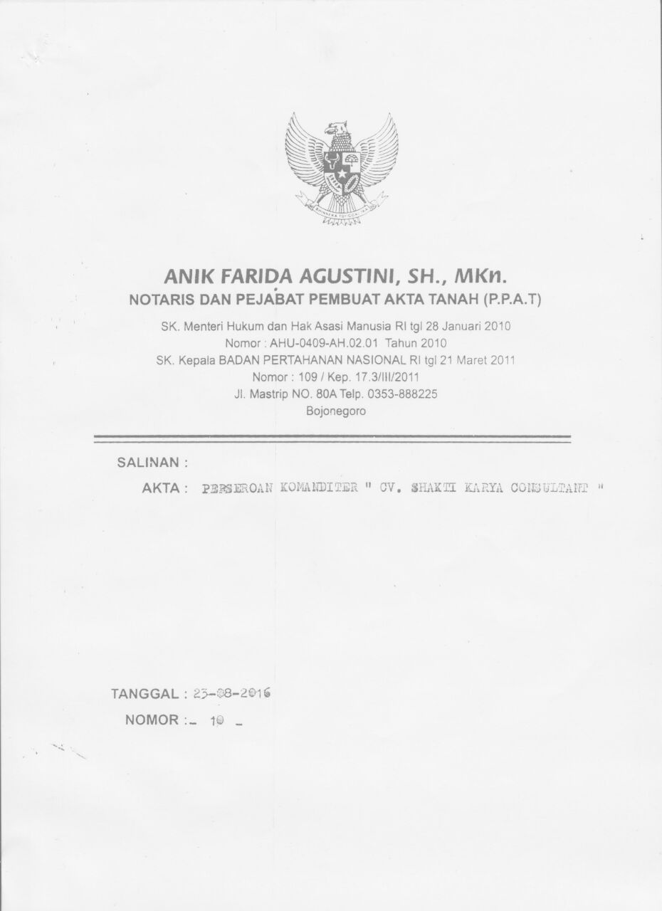 CV. SHAKTI KARYA CONSULTANT: AKTA PENDIRIAN