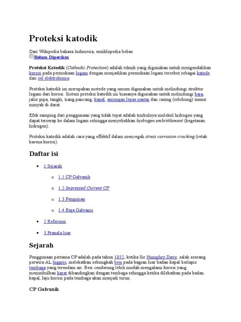 PDF) PROTEKSI KATODIK DENGAN ANODA TUMBAL SEBAGAI PENGENDALI LAJU KOROSI BAJA DALAM LINGKUNGAN AQUEOUS | Bimo 378 - Academia.edu