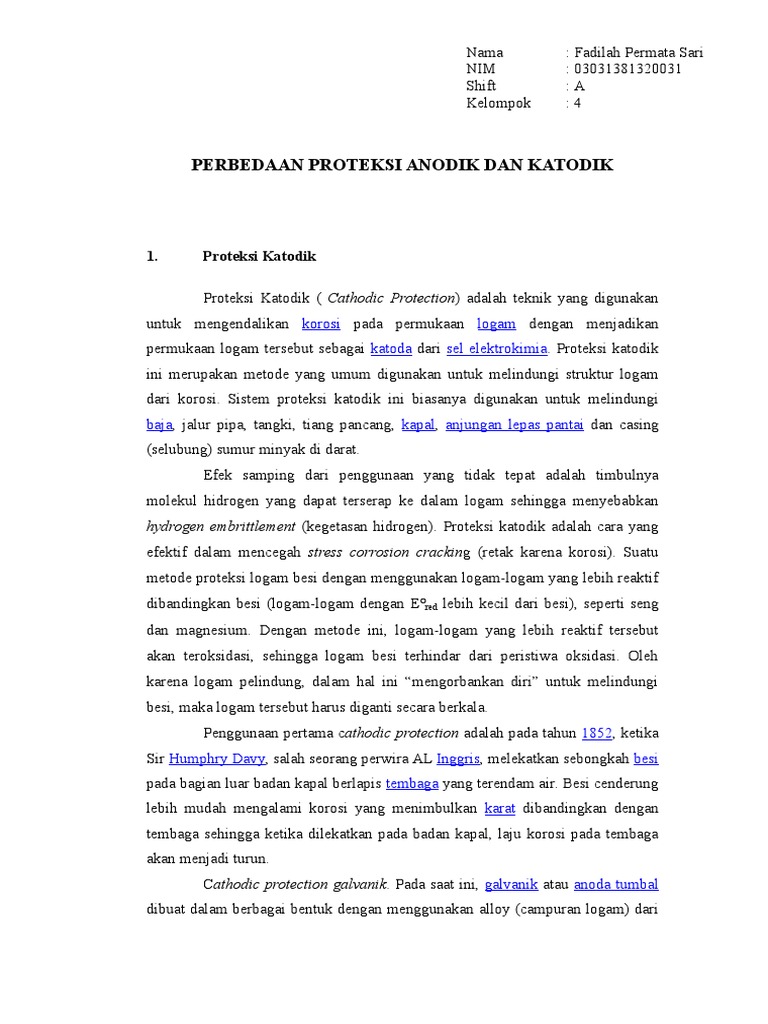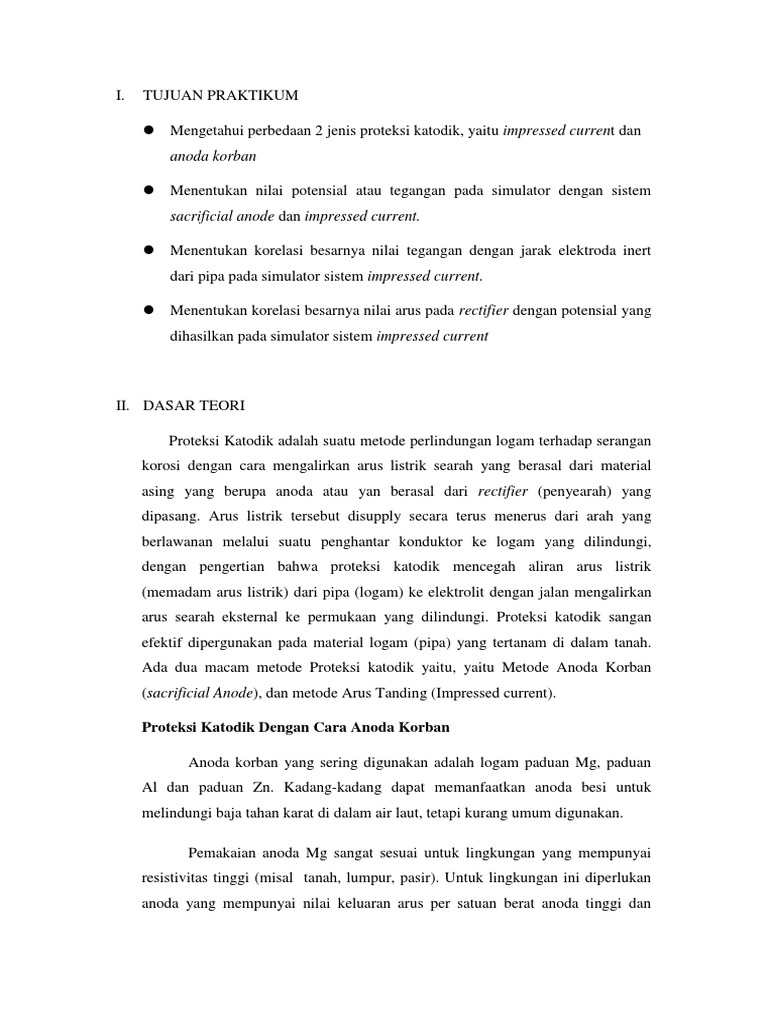 DOC) LAPORAN PRAKTIKUM PENGENDALIAN KOROSI PROTEKSI KATODIK MENGGUNAKAN ANODA KORBAN | Palguno Helyoso - Academia.edu
