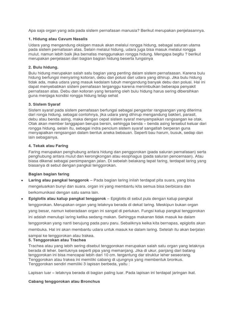 Soal: Jelaskan organ penyusun sistem pernapasan manusia beserta fungsinya - Penulis Cilik