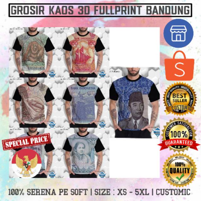 Jual kaos uang 100 rb sukarno 1 rupiah , kaos fullprint berkualitas - Kota Bandung - Oto Care | Tokopedia