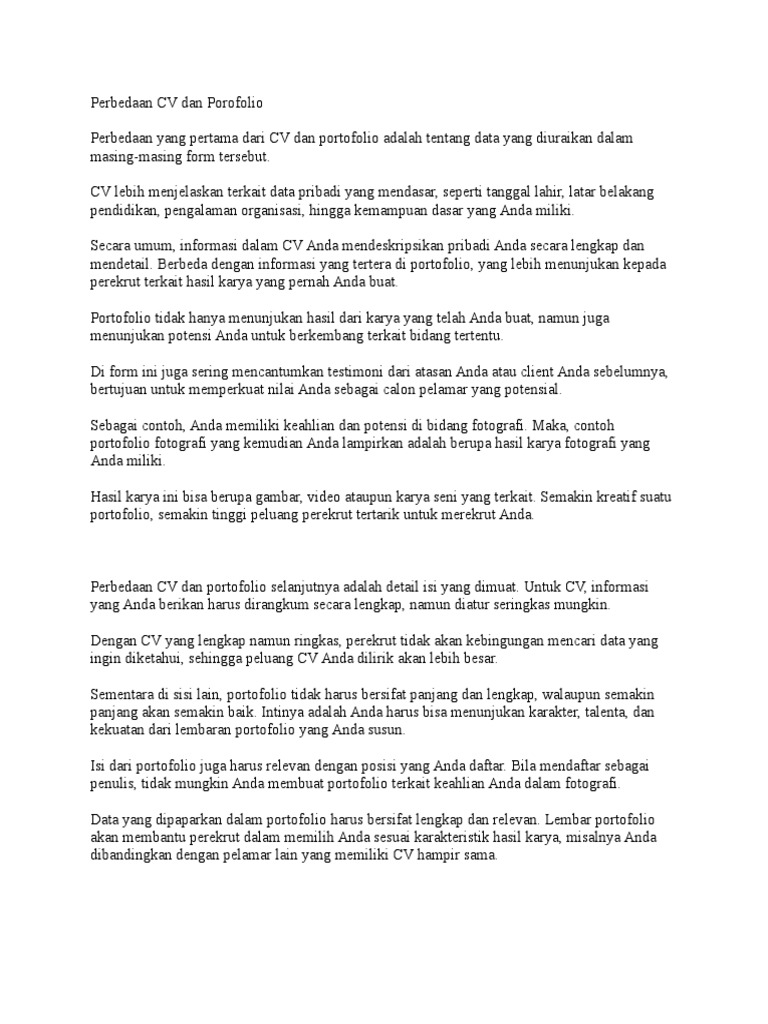 Perbedaan CV dan Portfolio - Cara Membuat dan Contoh Lengkap