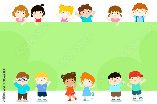 Happy children holding blank poster template for advertising.brochure ready for your message. - Buy this stock vector and explore similar vectors at Adobe Stock | Adobe Stock