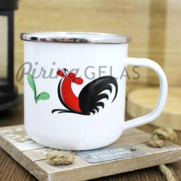 E8 PREMIUM Cangkir ayam jago / cangkir enamel / gelas enamel / gelas ayam jago seri 2 KUKURUYUK | Shopee Indonesia