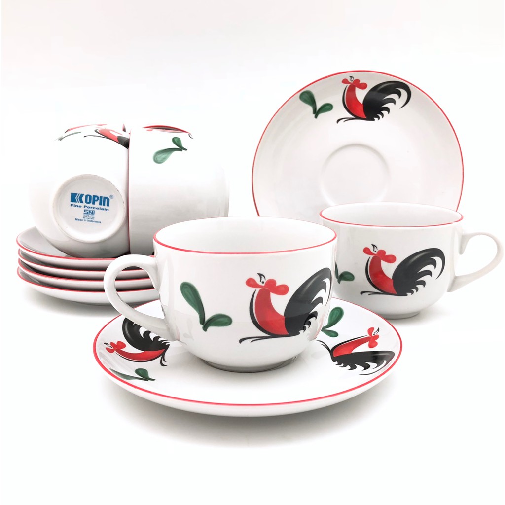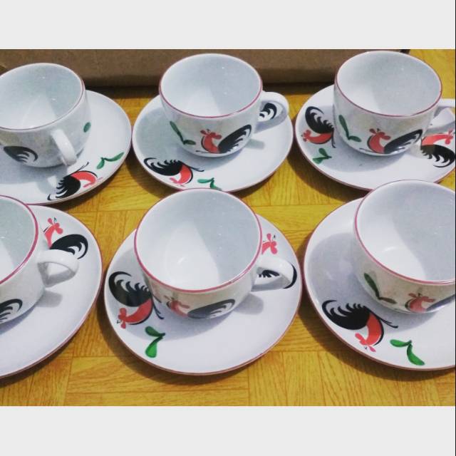 Jual Cangkir st/gelas set/6 pasang cangkir dan saucer, kopin ayam jago. - Jakarta Barat - alieff | Tokopedia