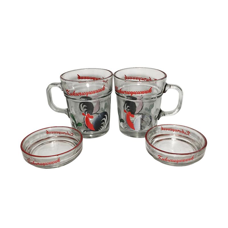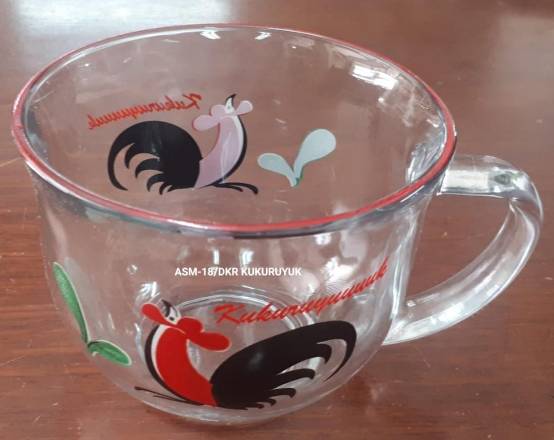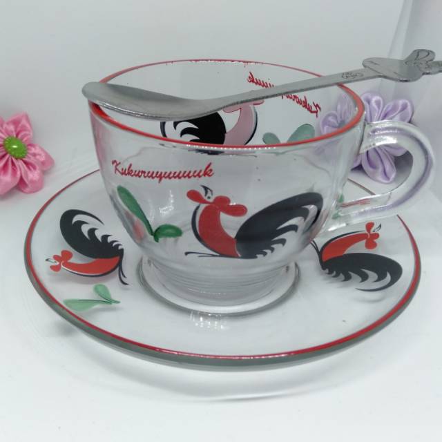 Set Cangkir dan Tatakan bening gambar ayam jago kukuruyuuk. Sedus isi 6set. | Shopee Indonesia