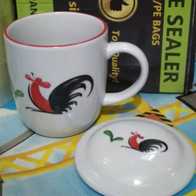 Mug keramik ayam jago berikut tutupnya/ gelas kopi, teh keramik | Shopee Indonesia