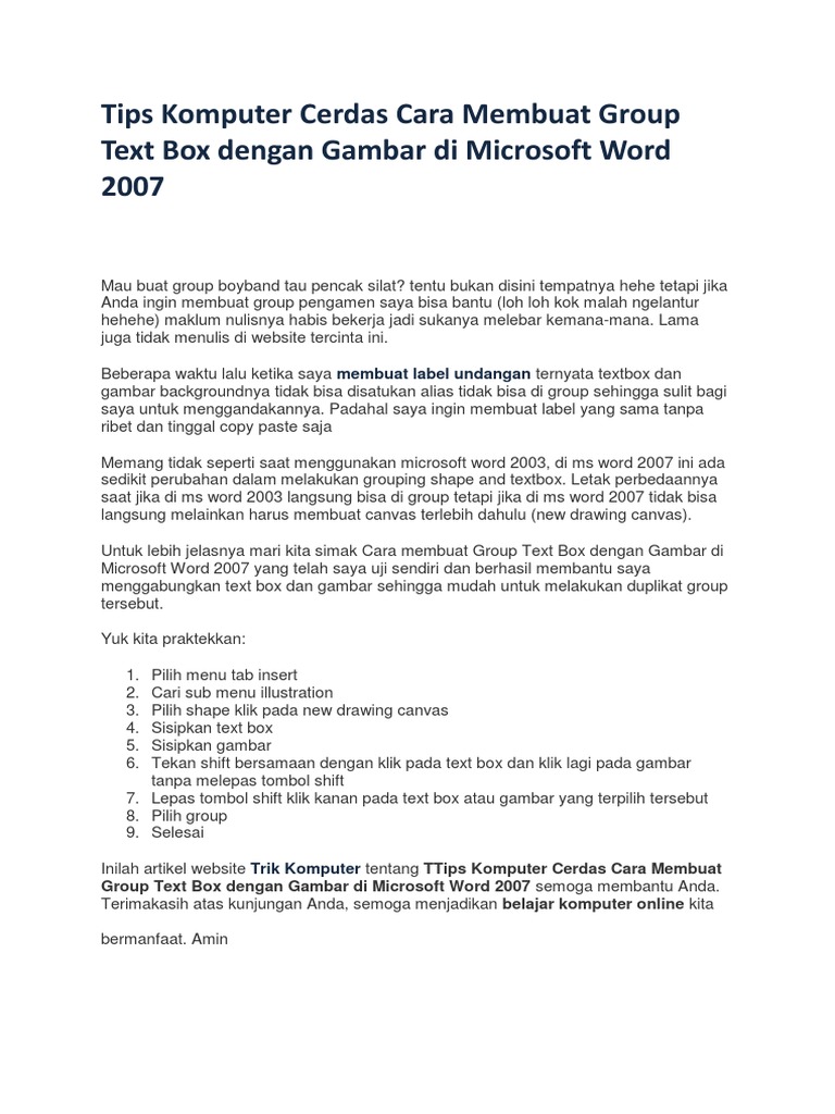 Tips Komputer Cerdas Cara Membuat Group Text Box dengan Gambar di Microsoft Word 2007