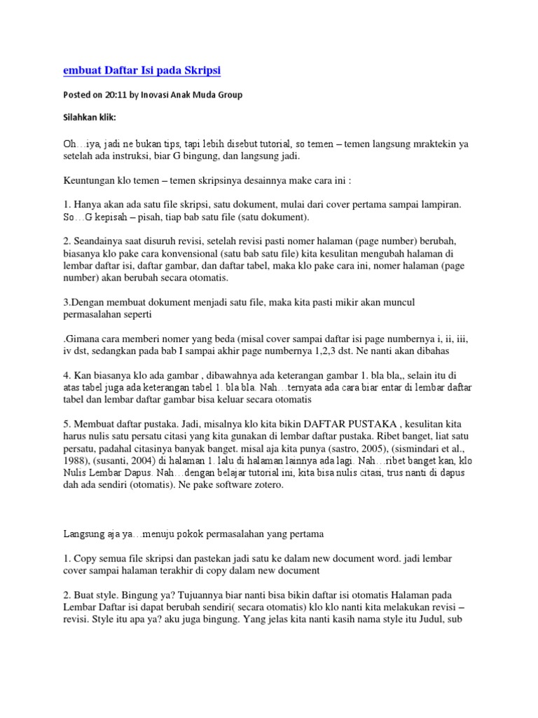 Contoh Daftar Isi, Download File, Cara Membuat Daftar Isi Otomatis Word