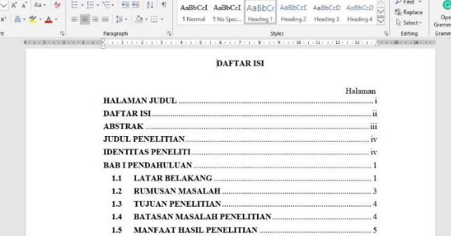 Cara Membuat Daftar Isi Otomatis di Skripsi Menggunakan Word