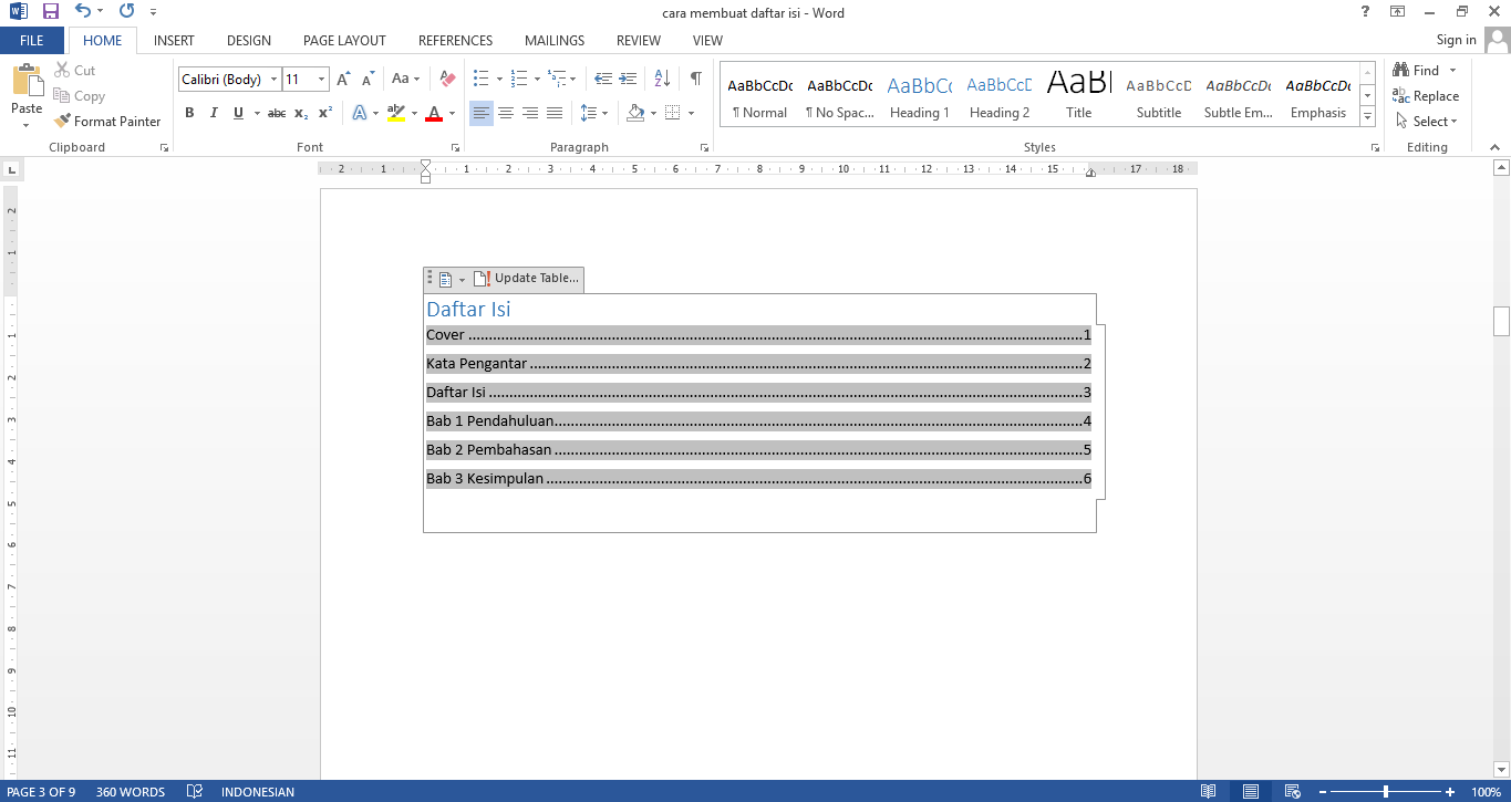 Cara Membuat Daftar Isi Otomatis Pada Microsoft Word - Rintho Rante Rerung