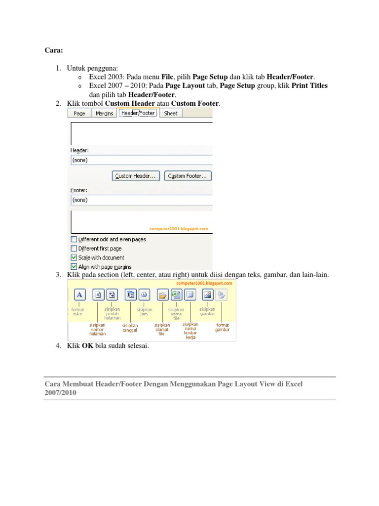 Cara Mengolah Header dan Footer di Excel – Computer 1001