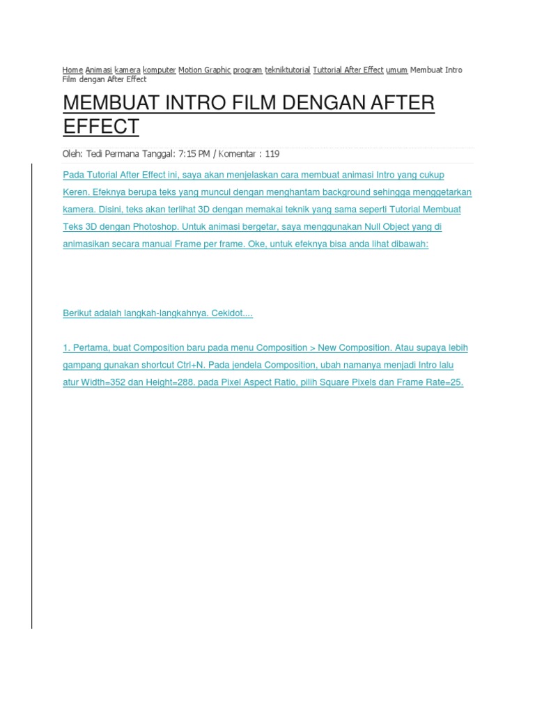 Membuat Intro Film Dengan After Effect: Oleh: Tedi Permana Tanggal: 7:15 PM / Komentar: 119