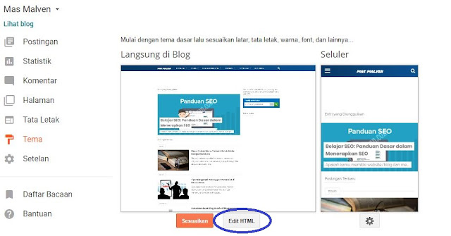 Cara Edit HTML Untuk Merubah Menu Template Blogger - Mas Malven