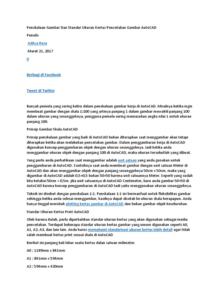 Penskalaan Gambar Dan Standar Ukuran Kertas Pencetakan Gambar AutoCAD