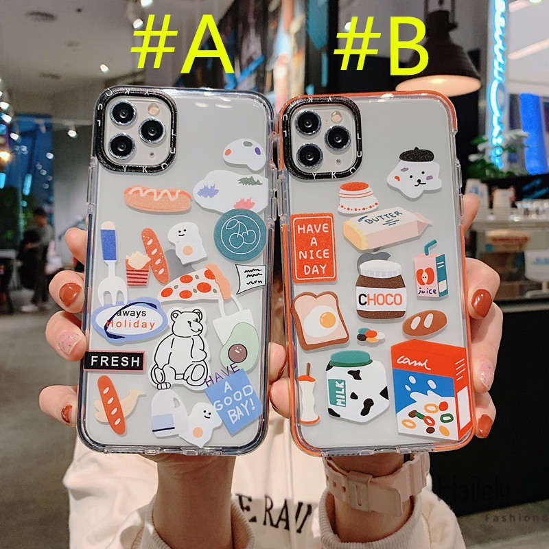 LULTON Casing Ponsel TPU Kartun, Sarung HP Stiker Merek Trendi Kartun Lucu, Kartun KT Makanan Ringan