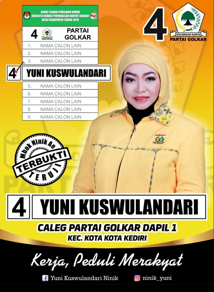 Ingat 17 April 2019, Ingat Yuni Kuswulandari Caleg DPRD Kota Kediri dari Partai Golkar, Coblos No 4 - arayanaNews.com