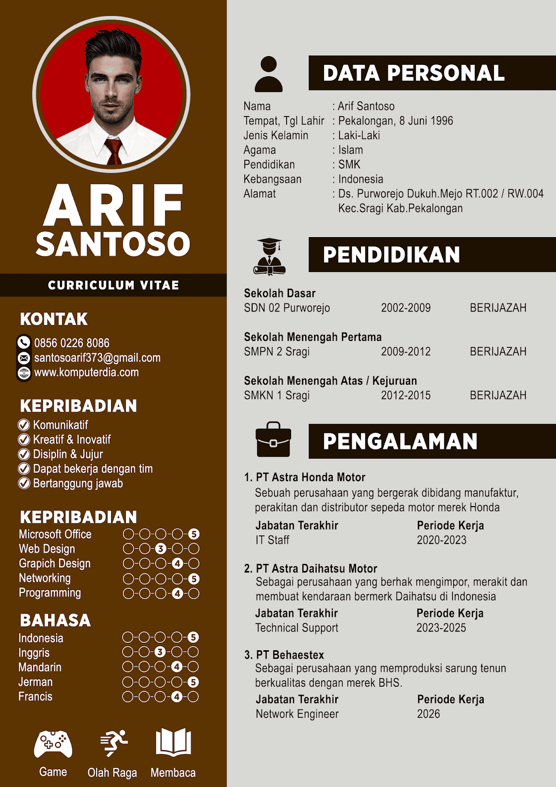 Cv Template Bahasa Indonesia - Resume Examples | Creative cv template, Desain cv, Cv kreatif