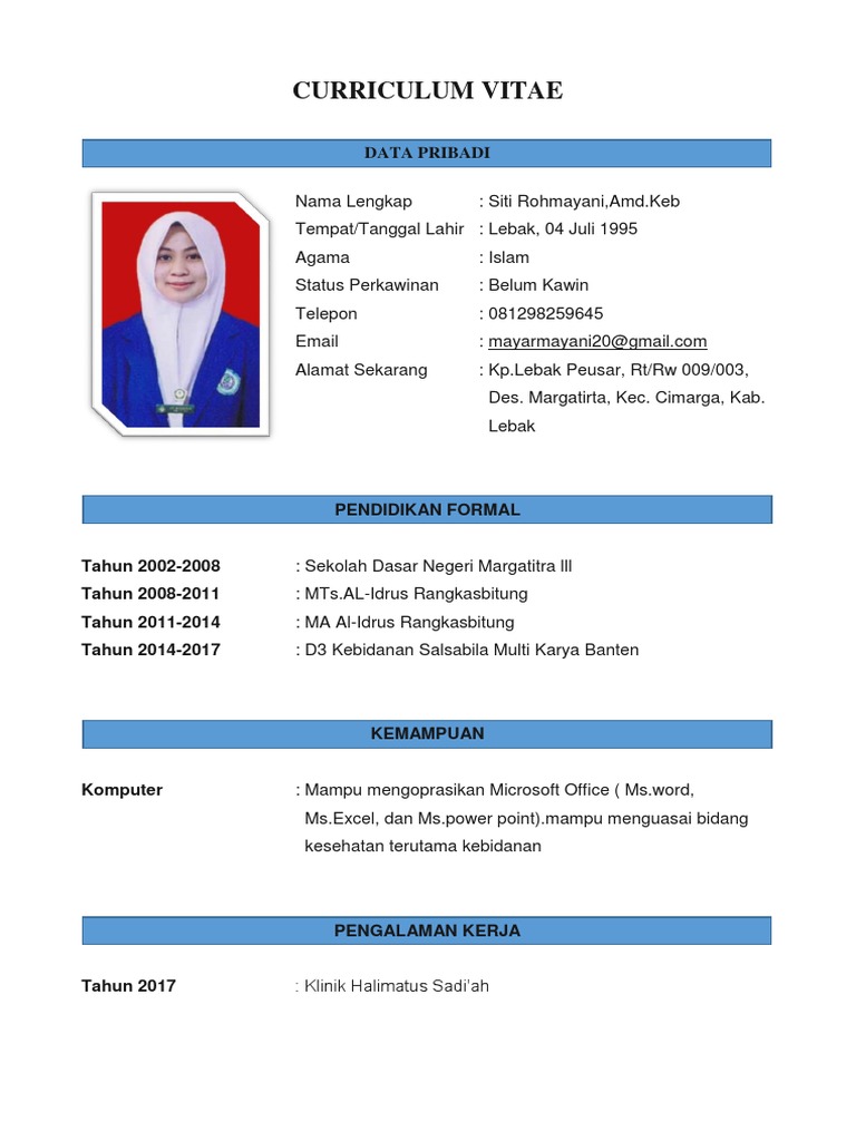 Contoh Curriculum Vitae Kebidanan - Gawe CV