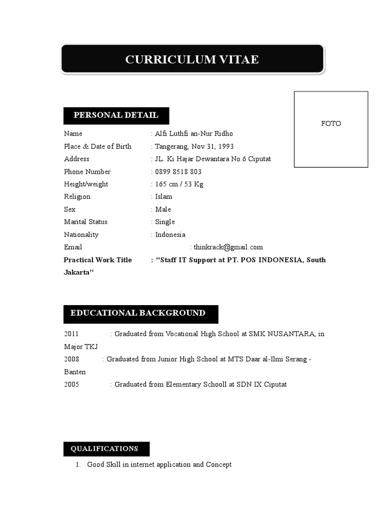 Contoh Curriculum Vitae (CV) – tomtomdj