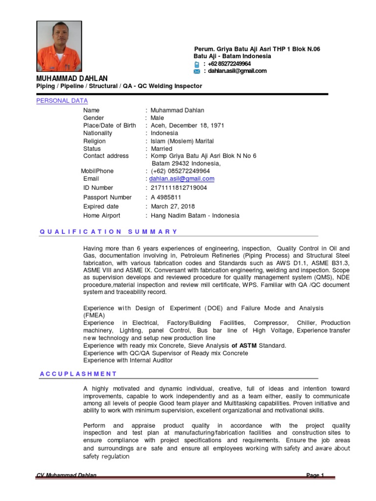 Curriculum Vitae Qa Qc | Contoh Dokumen