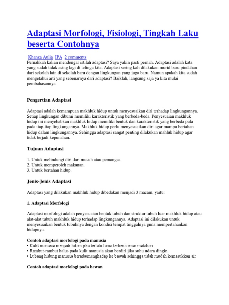Pengertian dan Contoh Adaptasi Morfologi, Fisiologi, Tingkah Laku pada Makhluk Hidup (Manusia, Hewan, Tumbuhan) – My Post