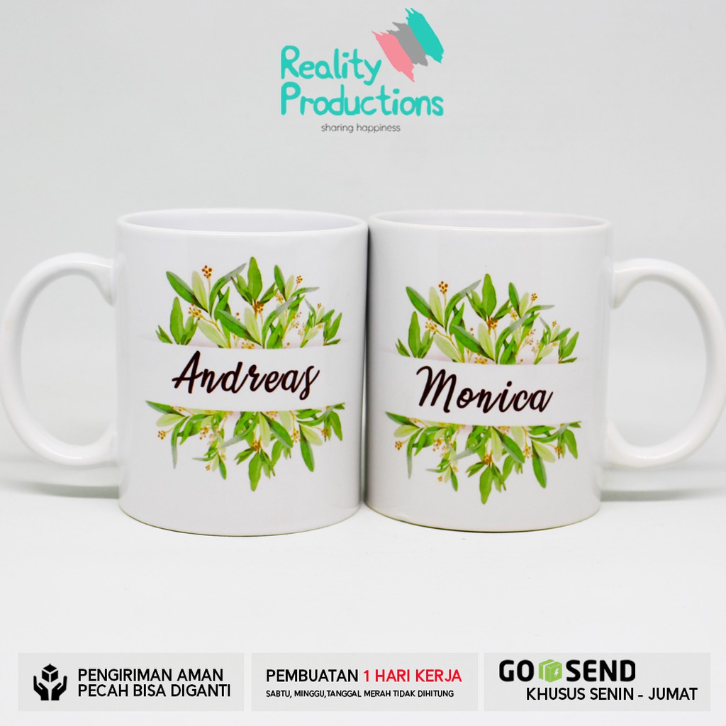 Mug Couple Green Leaves Watercolor untuk Kado Pernikahan | Shopee Indonesia