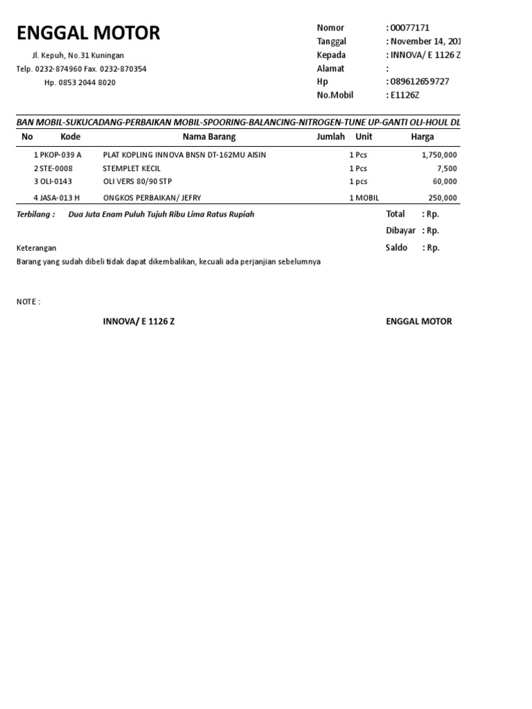 Contoh Faktur Pembelian Mobil | Materi Pelajaran 6
