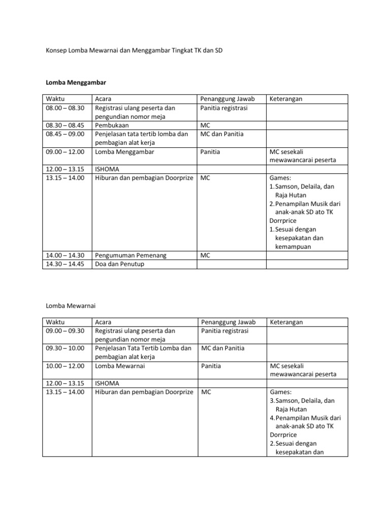 Konsep Lomba Mewarnai Dan Menggambar Tingkat TK Dan SD
