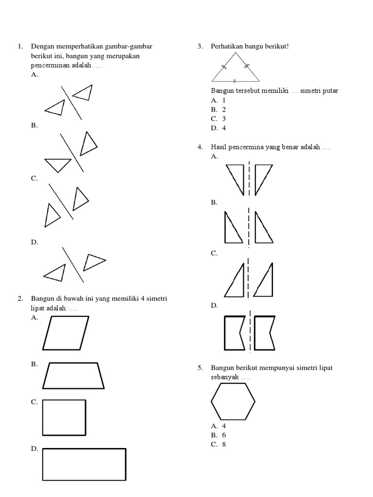 Contoh Soal Pencerminan Dan Jawabannya Sd - Peranti Guru