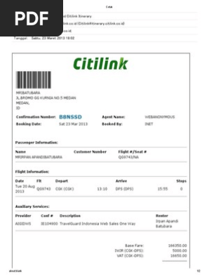 Contoh tiket citilink dan penjelasan - Traveling Tips