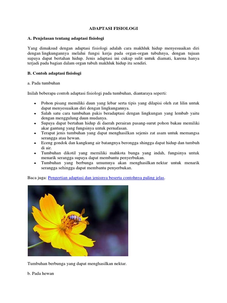 Contoh Adaptasi Fisiologi Pada Tumbuhan dapat terjadi… Adaptasi adalah suatu usaha yang dilakukan oleh makhluk hidup dalam menyesuaikan diri…