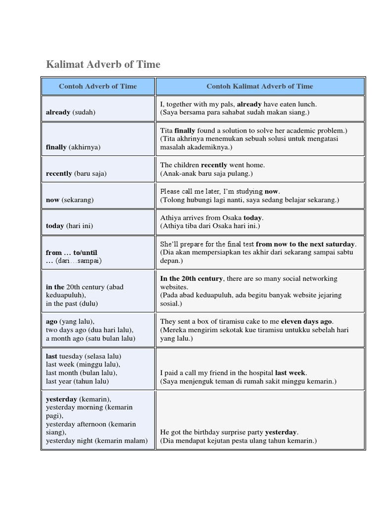 6 Jenis Adverb of Time Dalam Bahasa Inggris - Contoh Lengkap
