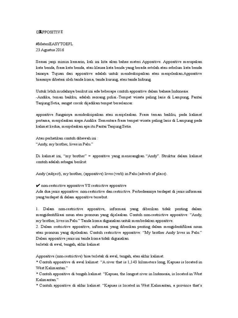 Pengertian Appositive Dan Contohnya Dalam Bahasa Inggris