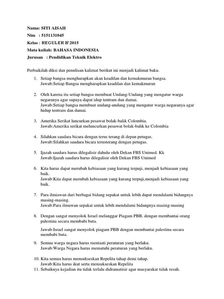 Perbaikilahh Diksi Dan Penulisan Kalimat Berikut Ini Menjadi Kalimat Baku