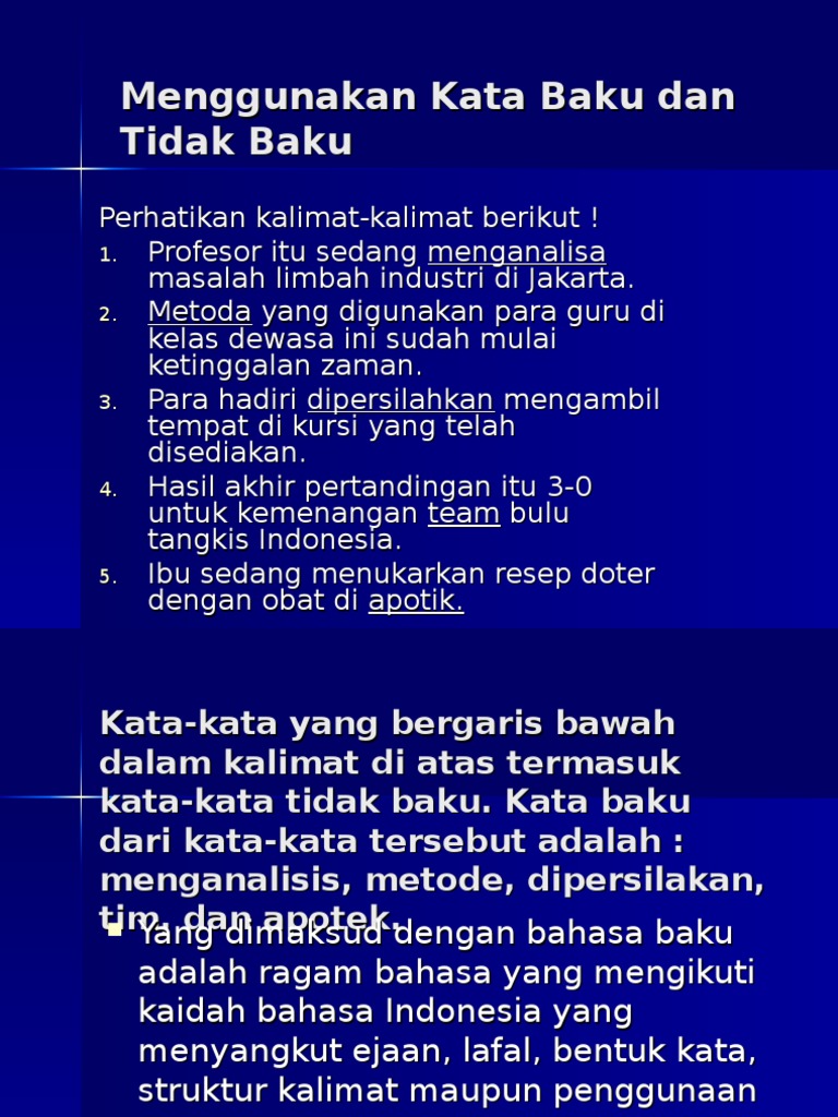 Contoh Kalimat Baku Dan Tidak Baku Ppt