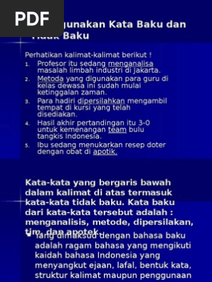 Contoh Kalimat Baku Dan Tidak Baku Ppt - Temukan Contoh