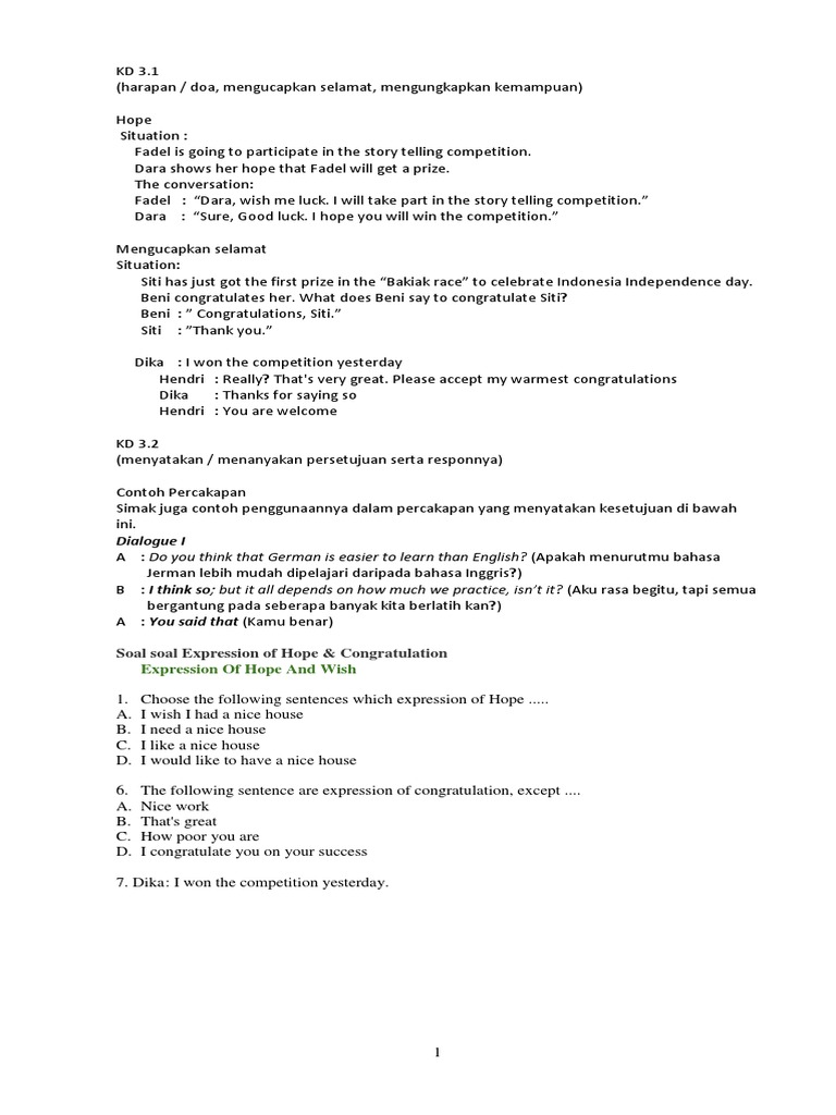 DOC) Percakapan Bahasa Inggris: Compliment and congratulation Dalam interaksi sosial | Dwi Cahyo - Academia.edu