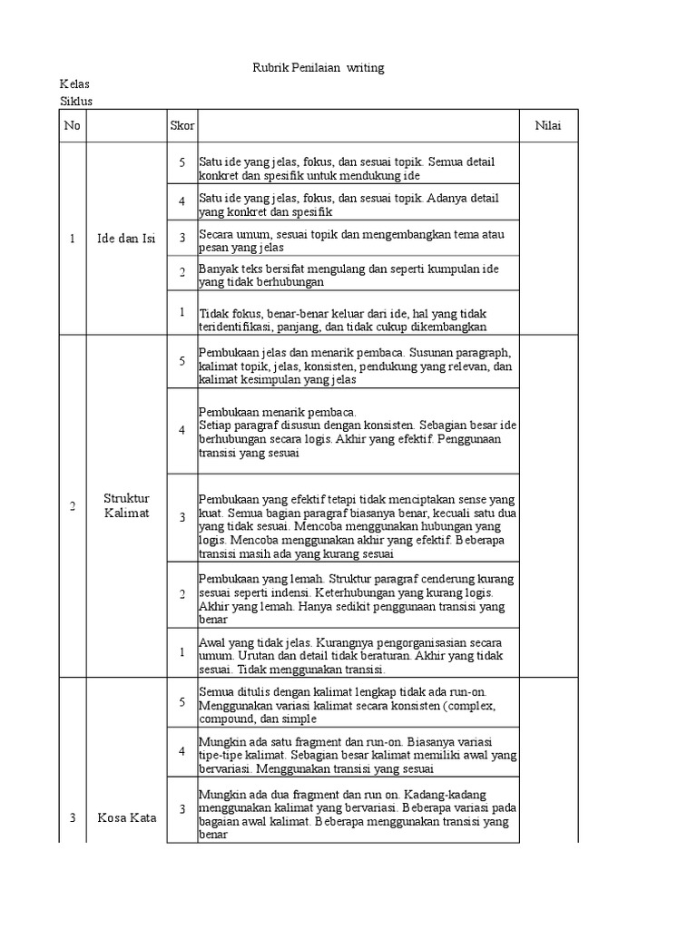 PDF) MODEL PENILAIAN DALAM MENULIS (WRITING | Ita adryani Syam - Academia.edu