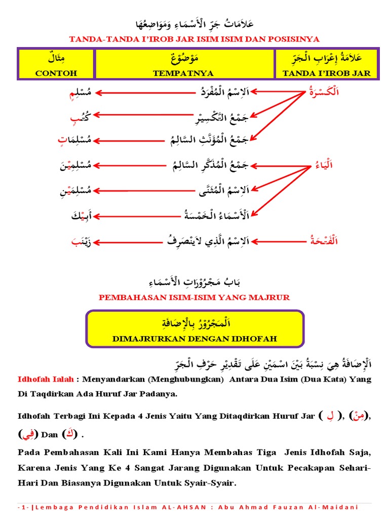Tanda-tanda i’rob jar ( ) dalam Ilmu Nahwu | Arabunaa (Belajar Bahasa Arab Online)