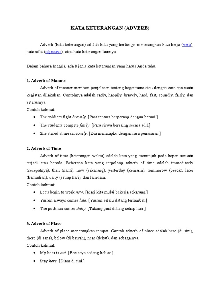 900+ Contoh Adverb : Pengertian, Macam, Posisi, Fungsi Kata Keterangan – FABELIA