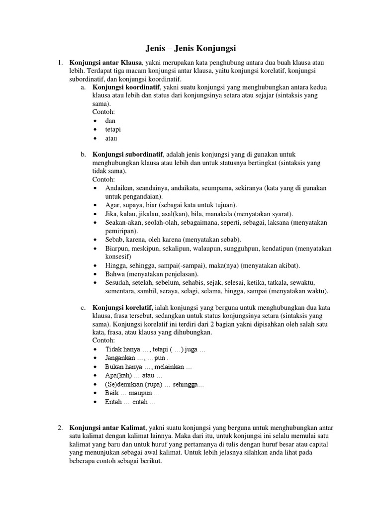 DOC) Pengertian dan Macam-Macam Konjungsi dalam Kalimat Bahasa Indonesia | Achmad Wafi Junaedy - Academia.edu